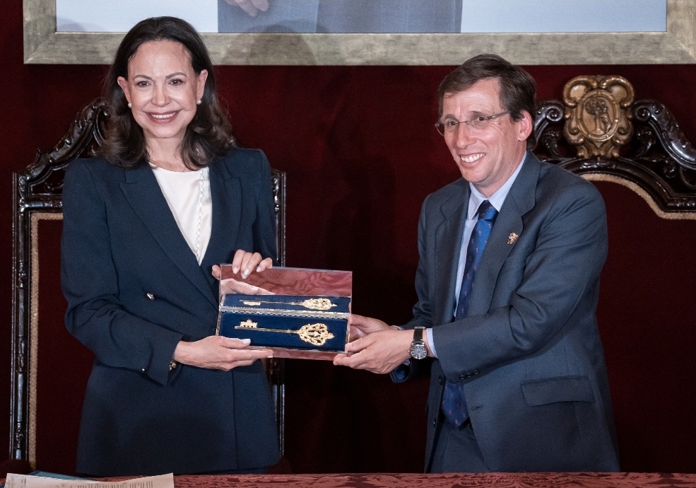Su presencia en la Puerta del Sol hoy el sábado 18 de abril, y la concesión de la Llave de Oro de Madrid han simbolizado un fuerte respaldo desde sectores de la derecha española.